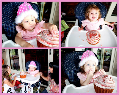 I made this special little cupcake for Lydia, but I was a little disappointed when she just picked away at the top of it and then signed all done after a few bites. It was good, I tasted it to make sure. She is just a picky eater. But I sure do love watching babies go to town and make a mess out of their cakes...which that's kind of weird for me, but it must be the only situation where I think the mess is cute. :)